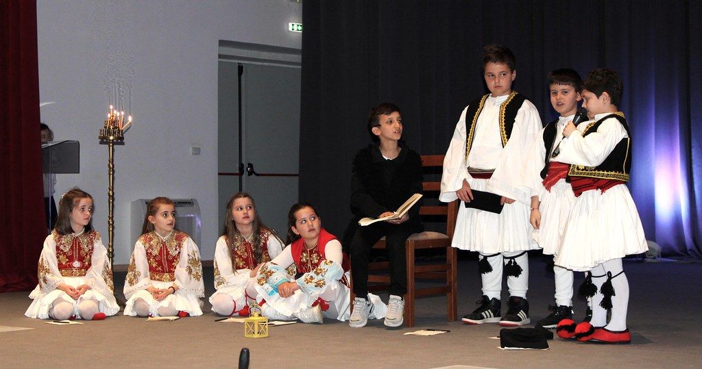 E filluam me një shfaqje të shkurtër teatrale. Vitin e kaluar, dhuruam këtu në qendrën kulturore të Derviçanit një kopje të pikturës "Shkolla e Fshehtë" nga Nikolaos Gyzis, e cila ishte realizuar nga një nxënëse e shkollës sonë. Këtë vit, nxënësit më të vegjël e sollën në jetë këtë pikturë me talentin e tyre në aktrim!